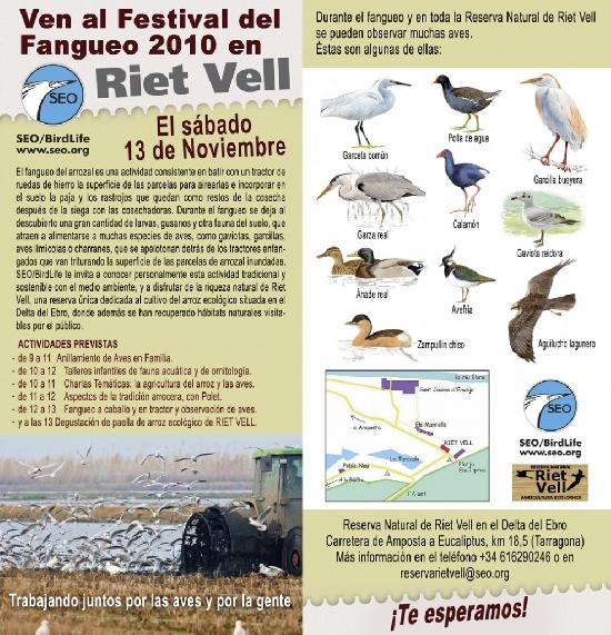 SEO / BirdLife et convida a conèixer personalment aquesta activitat tradicional i sostenible amb el medi ambient, ia gaudir de la riquesa natural de Riet Vell, una reserva única dedicada al cultiu de l'arròs ecològic situada al Delta de l'Ebre, on a més s'han recuperat hàbitats naturals visitables pel públic.