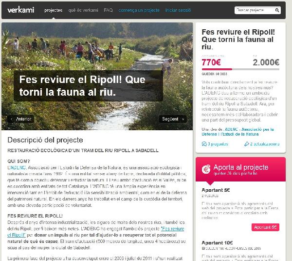 La proposta de micromecenatge parteix de l'exposició del projecte a través d'una pàgina web, de manera que qualsevol persona el pugui conèixer accedint-hi i decidir, si vol, col·laborar-hi econòmicament perquè es pugui dur a terme. La plataforma de la xarxa utilitzada per llençar aquesta proposta és Verkami. Podeu accedir-hi a l'enllaç ttp://www.verkami.com/projects/1346-fes-reviure-el-ripoll-que-torni-la-fauna-al-riu